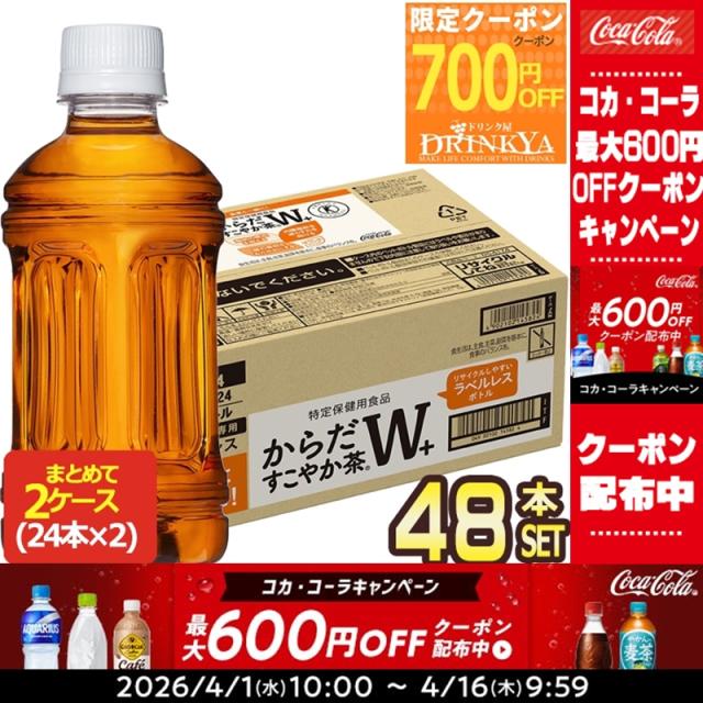 【最大1300円クーポン】コカコーラ からだすこやか茶W+ ラベルレス 350mlPET×48本[24本×2箱][特定保健用食品] [賞味期限:2ヶ月以上][送料無料]【2〜3営業日以内に出荷】
