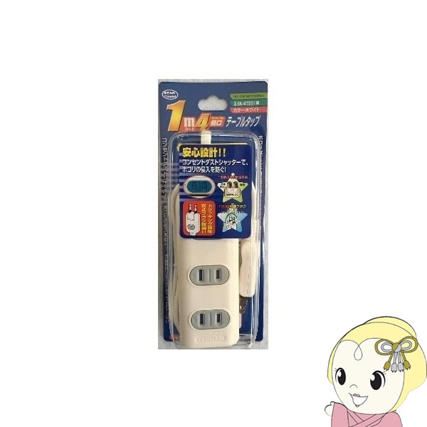 在庫限り 電源タップ 延長コード 1m 星光商事 STAR Light 4個口シャッター付 SK-4TS01W