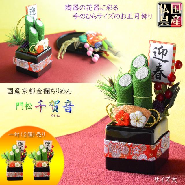 国産・お正月飾り【国産京都 手造り迎春お飾り:門松 千加音(ちかね)一対(2個)売り 黒陶器 サイズ大】 新年 新春 正月 送料無料