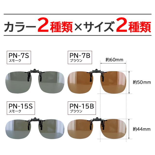 サングラス 偏光 クリップオン 眼鏡の上から サングラス 偏光 跳ね上げ ワンタッチ クリップ式 UV99%カット 紫外線カット PN-7 四角型 PN-15 丸型 スモーク ブラウン 偏光レンズ 車 運転用 ドライブ 釣り レジャー メンズ レディース ユニセックス 定形外郵便 送料無料