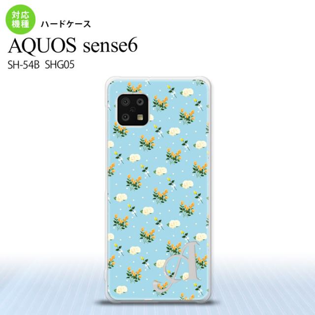 SH-54B SHG05 AQUOS sense6 スマホケース ハードケース 花柄 バラ ドット 小 水色 +アルファベット