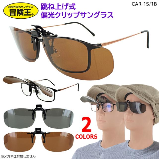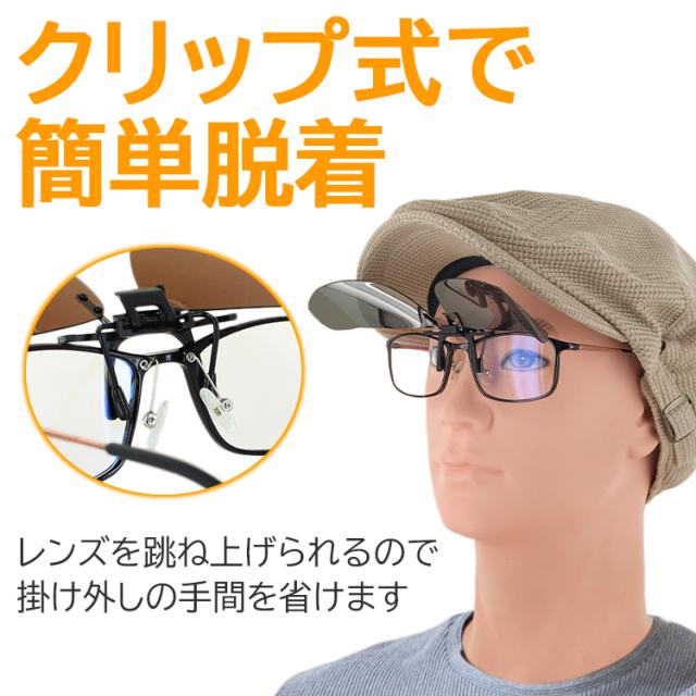 偏光サングラス クリップオン メガネの上から クリップ式 サングラス 跳ね上げ メンズ レディース UVカット CAR-1 サイドガード仕様 ドライブ 運転 釣り