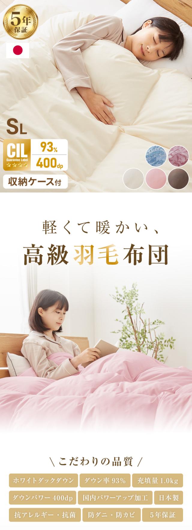 日本製 羽毛布団 シングルロング 150×210cm ホワイトダックダウン93% 充填量1.0kg 立体キルト 抗菌 アレルGプラス&2倍洗浄 400dp以上 かさ高165mm以上 掛け布団 国産 掛け布団 掛布団 布団