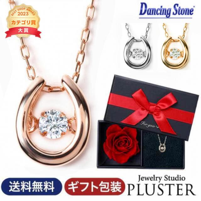 ダンシングストーン ネックレス レディース ダイヤ ダンシングストーンネックレス ダイヤモンド ダイヤモンドネックレス ゴールド ピンクゴールド K10 揺れる クロスフォー 馬蹄 ホースシュー 10k 彼女 誕生日 プレゼント 女性 ギフト 限定ケース付 アクセサリー 母の日