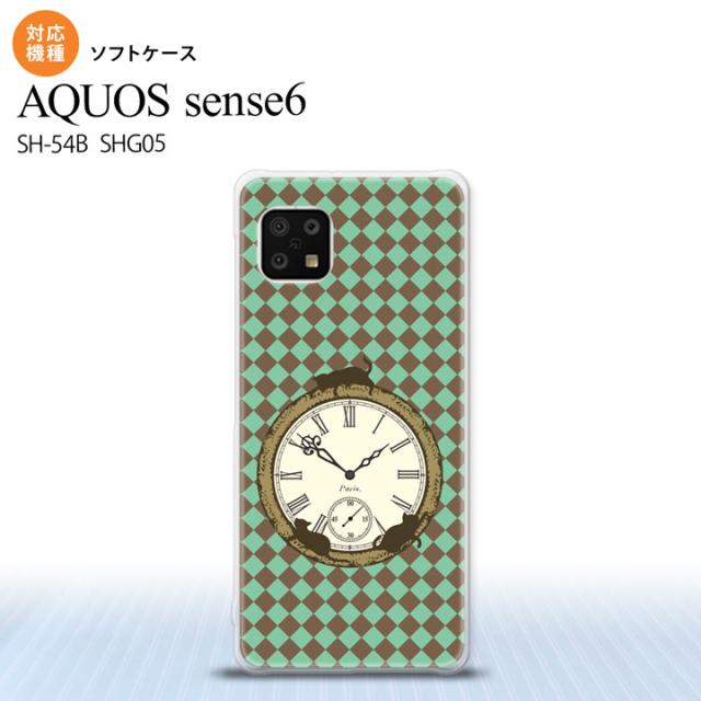 SH-54B SHG05 AQUOS sense6 スマホケース ソフトケース 時計 チェック 緑 メンズ レディース nk-sens6-tp1223