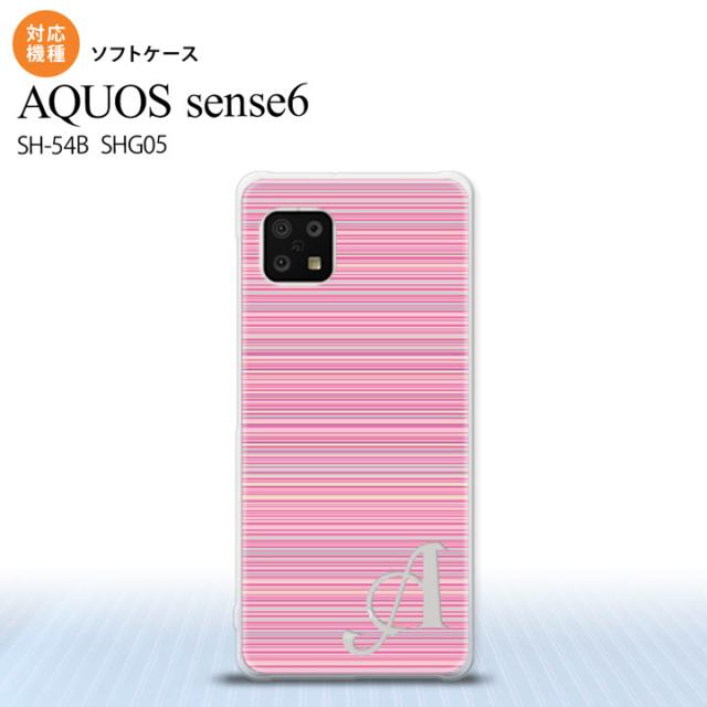 SH-54B SHG05 AQUOS sense6 スマホケース ソフトケース ボーダー 細 ピンク +アルファベット