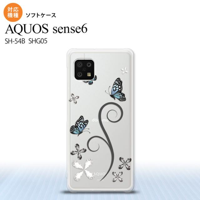 SH-54B SHG05 AQUOS sense6 スマホケース ソフトケース バタフライ 蝶 C 黒 メンズ レディース nk-sens6-tp221