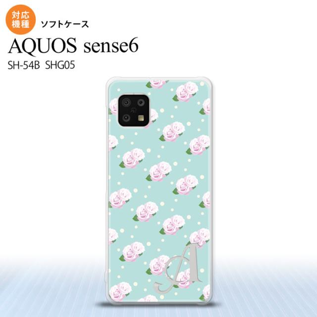 SH-54B SHG05 AQUOS sense6 スマホケース ソフトケース 花柄 バラ ドット 水色 +アルファベット