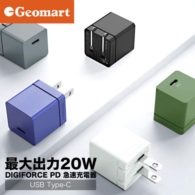 デジフォース cube 20W 1C PD Fast Charger 急速充電 Type-C 超小型 急速充電 USB-C タイプc 充電器 PSE認証済/PD&QC3.0対応 折畳式