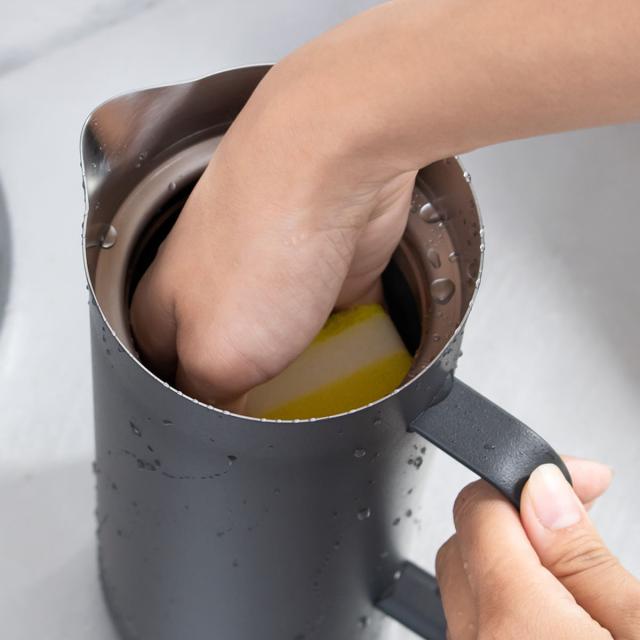 中栓を半時計回りにまわし、リブを注ぎ口に合わせて飲み物を注ぎます。しっかり握れる持ち手付きなので気軽に持ち運ぶことができ、安定して注ぐことができます。