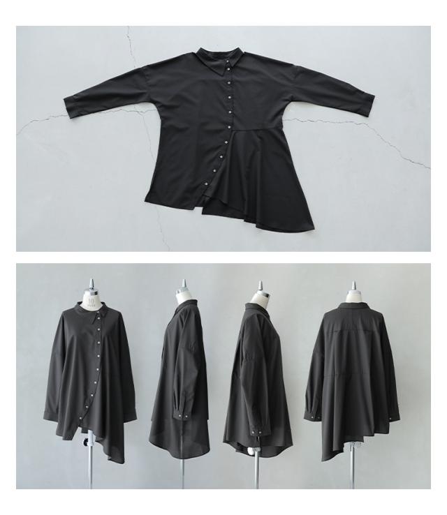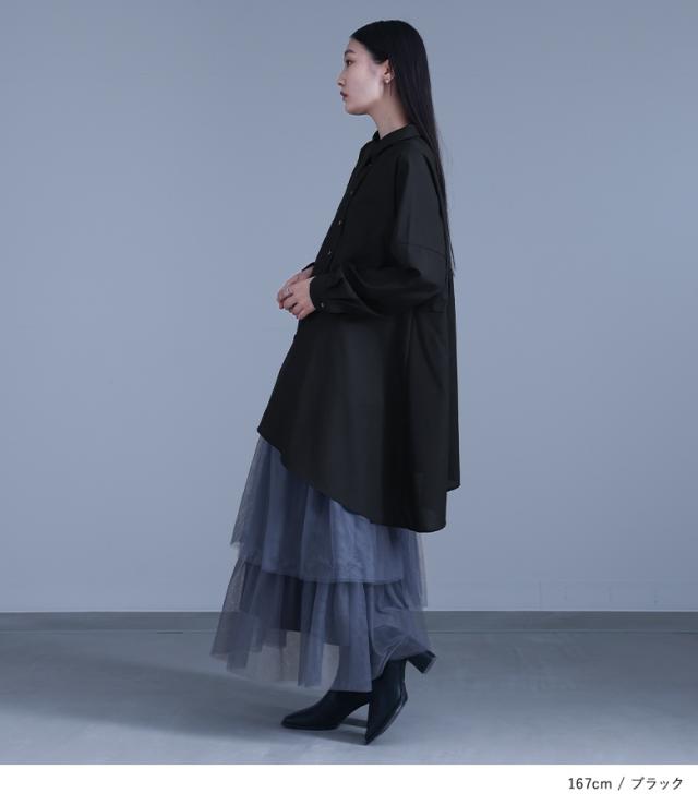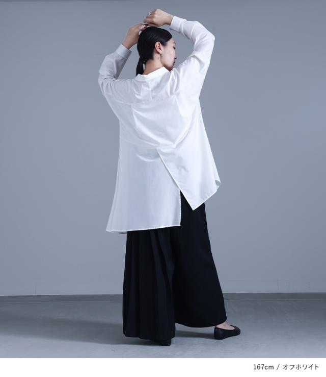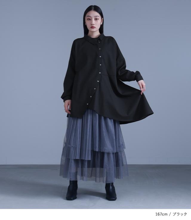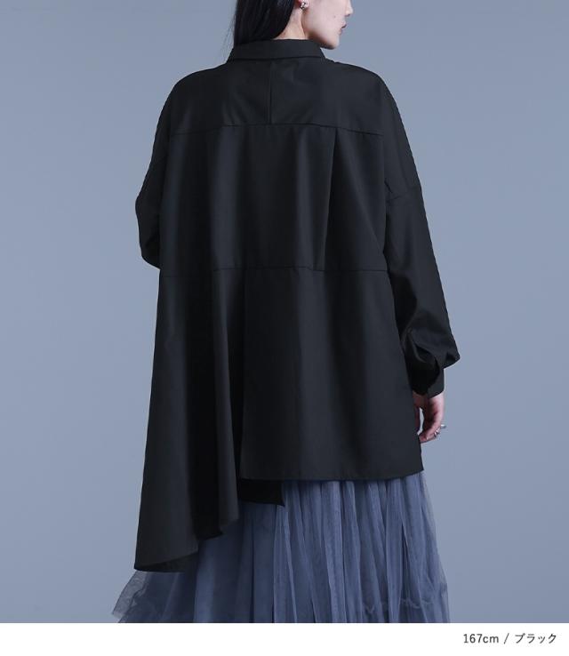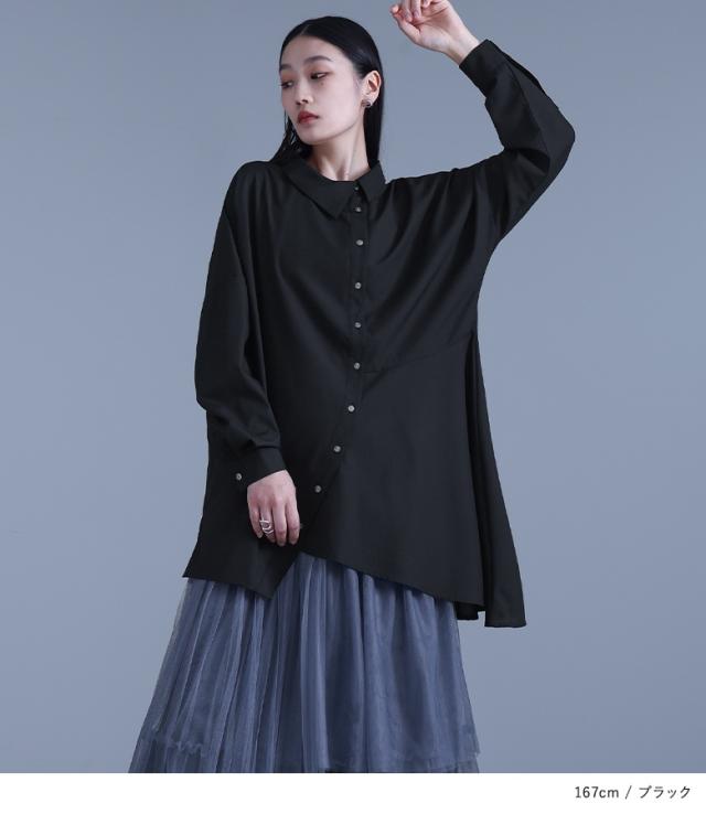 『kOhAKUアシンメトリーフレアシャツ』 ※メール便可※【10】[シャツ ロング ブラウス レディース トップス ドレープ フレア 長袖 襟付き アシンメトリー アシメ スリット 切替 重ね着 レイヤード 黒 白 tgk0305 ]