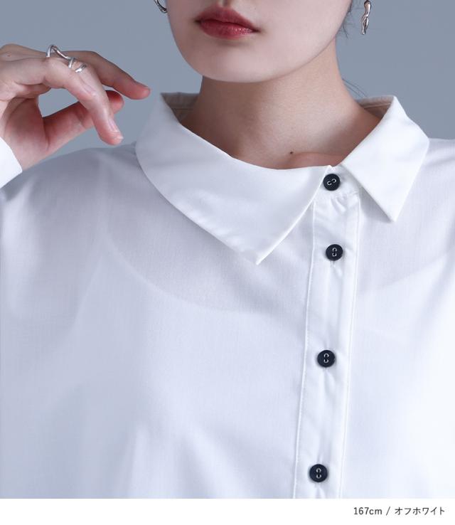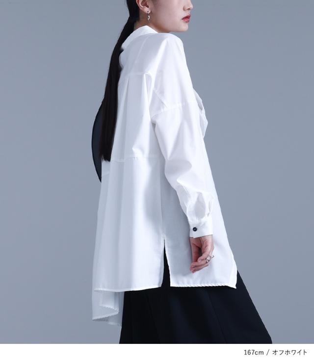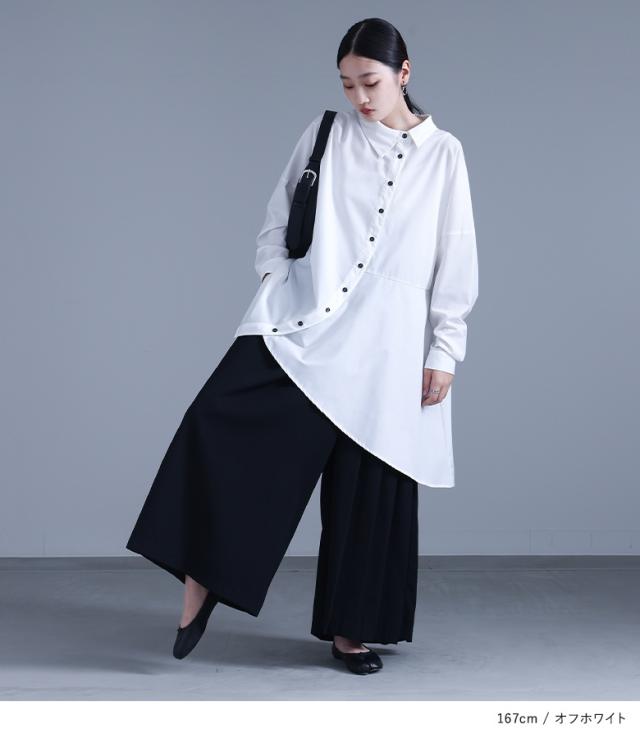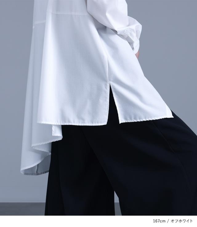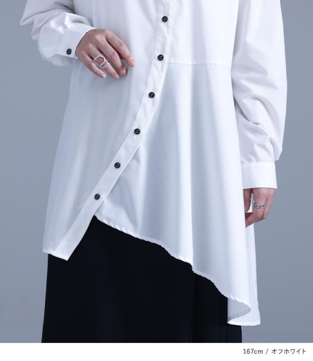 レディース トップス ブラウス シャツ ロングシャツ ボタンシャツ 前開きシャツ 襟付きシャツ 襟付き 長袖 フレア 変形 切り替え アシンメトリー アシメ スリット 無地 イレギュラーヘム レイヤード 重ね着 おうちで洗える 調節できる 調整可能 秋冬春 カジュアル お出掛け 大人女子 大人可愛い モード ラフ かっこいい Sサイズ Mサイズ Lサイズ LLサイズ 3Lサイズ XLサイズ フリーサイズ ぽっちゃり 体型カバー 大きいサイズ kOhAKU コハク ホワイト 白 オフホワイト ブラック 黒 【トップス】[ID]tgk0305