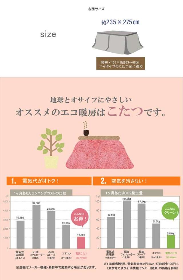 ■適応サイズ:90×135cmのハイタイプこたつ台に適応