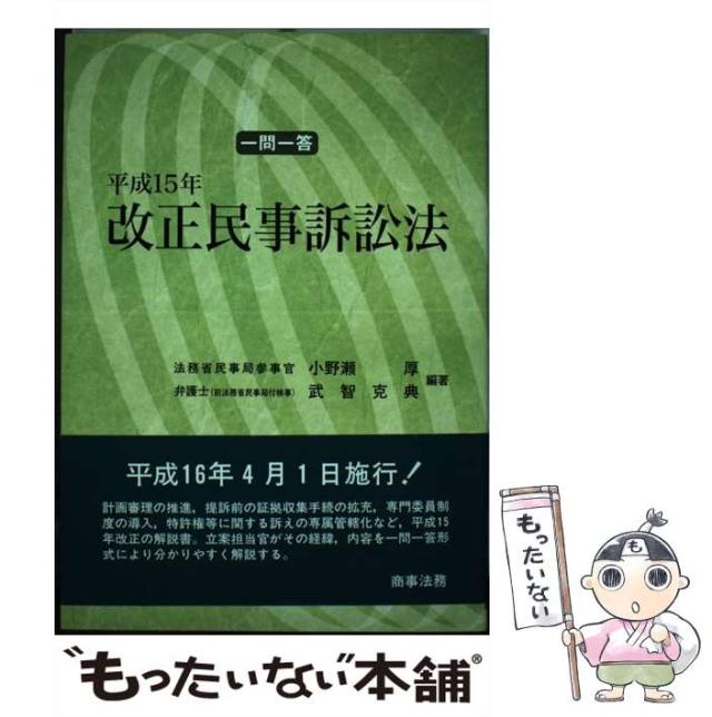 商品名:【中古】 一問一答平成15年改正民事訴訟法 / 小野瀬厚 武智克典 / 商事法務 [単行本]【メール便送料無料】
