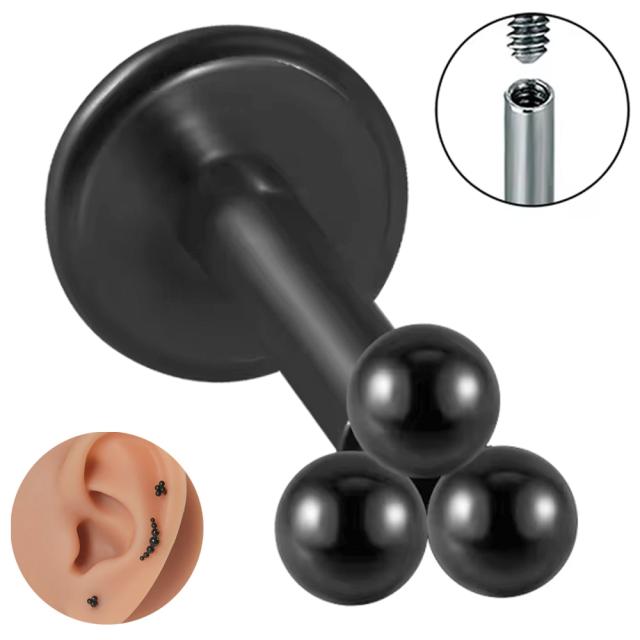 [ 16G 内ネジ ボディピアス ] ブラックインターナルラブレット(トリプルボール) ボディーピアス 1個販売 16ゲージ 逆ネジ 黒色色 ステンレス メンズ レディース インタナリータイプ シンプル 痛くない ファーストピアス ボール 玉 球体 3個 3連 小さい 小さめ