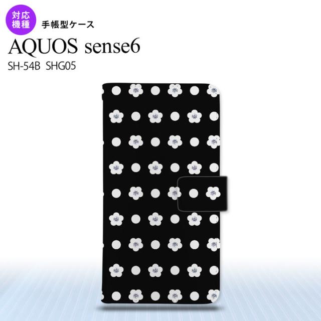 SH-54B SHG05 AQUOS sense6 手帳型スマホケース カバー 花柄 ドット 黒 nk-004s-sens6-dr341