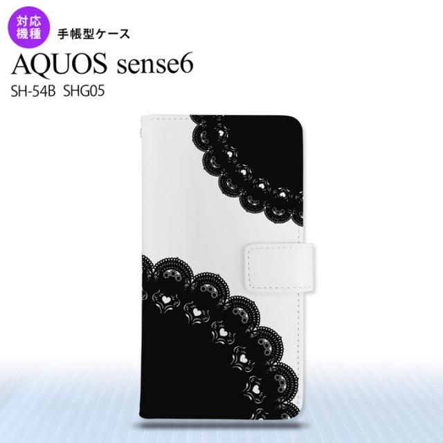 SH-54B SHG05 AQUOS sense6 手帳型スマホケース カバー レース 黒 nk-004s-sens6-dr722