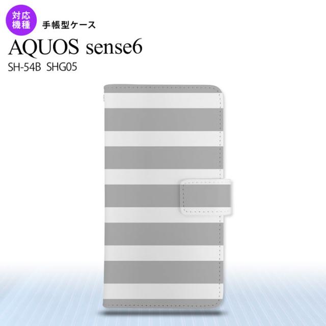 SH-54B SHG05 AQUOS sense6 手帳型スマホケース カバー ボーダー 大 グレー 白 nk-004s-sens6-dr793