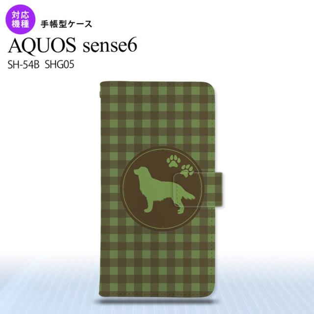 SH-54B SHG05 AQUOS sense6 手帳型スマホケース カバー 犬 ゴールデン レトリバー 緑 nk-004s-sens6-dr812