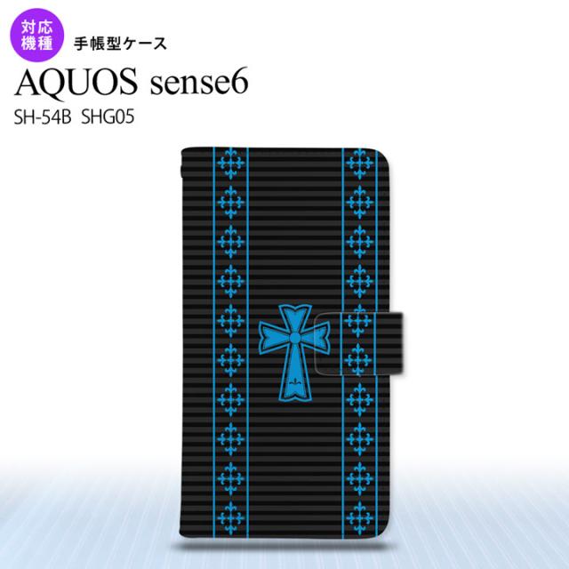 SH-54B SHG05 AQUOS sense6 手帳型スマホケース カバー ゴシック 黒 水色 nk-004s-sens6-dr1009