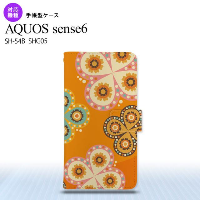 SH-54B SHG05 AQUOS sense6 手帳型スマホケース カバー エスニック 花柄 オレンジ nk-004s-sens6-dr1585