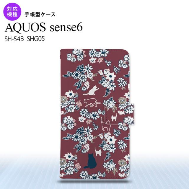 SH-54B SHG05 AQUOS sense6 手帳型スマホケース カバー 猫 花 紫 nk-004s-sens6-dr1722