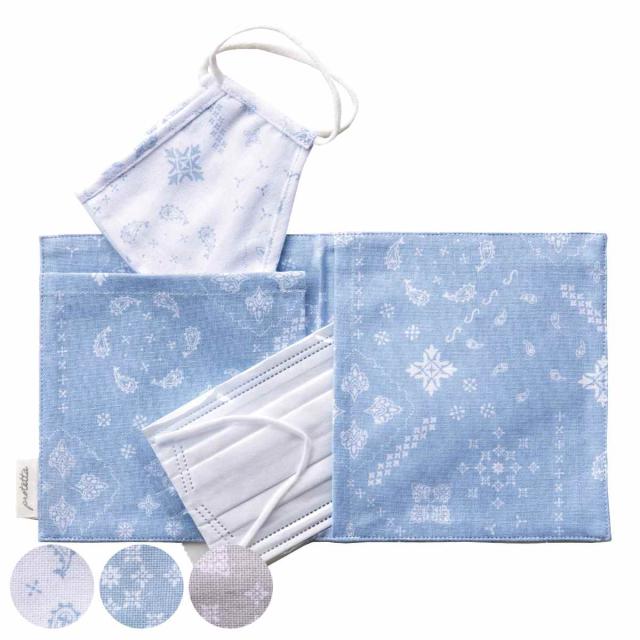 フラットタイプのマスクホルダーなので、マスクの出し入れがしやすくバッグの中もでかさばりません。2種類のポケット付きなので、使用中のマスクの仮置きと交換用のマスクを分けて収納することができます。