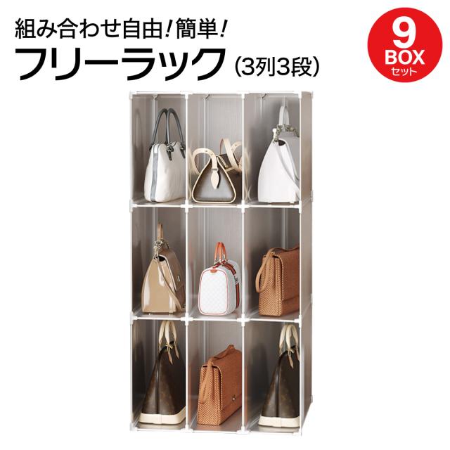 フリーラック 収納棚 9ボックスセット スリムラック 組立 押入れ バッグ 衣類 組合わせ自由 おしゃれ free-rack-9