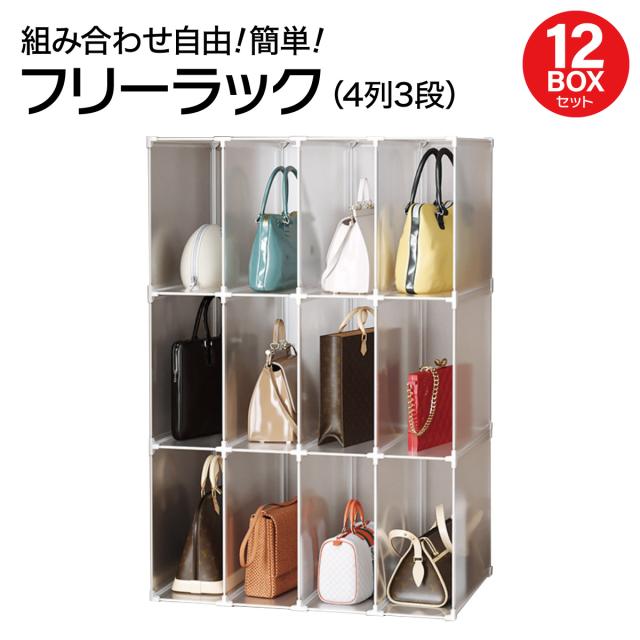 フリーラック 収納棚 12ボックスセット スリムラック 組立 押入れ バッグ 衣類 組合わせ自由 おしゃれ free-rack-12