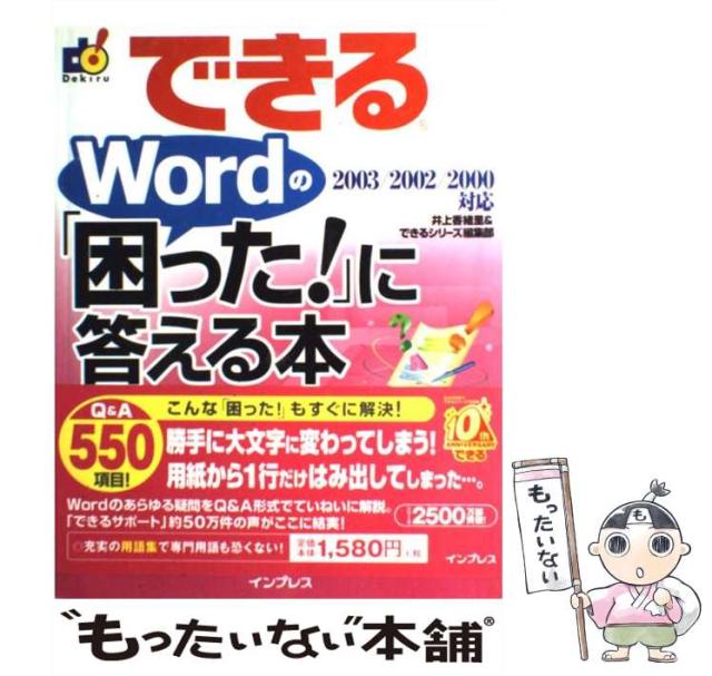 商品名:【中古】 できるWordの「困った!」に答える本 2003/2002/2000対応 / 井上香緒里 できるシリーズ編集部 / インプレス [単行本]【メール便送料無料】