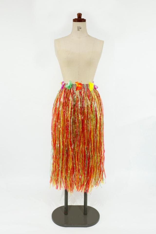 ハワイアンダンス、フラダンス衣装に欠かせないスカート「腰みの」です。ウェストがゴムとマジックテープの仕様になっておりフリーサイズです。ハワイアンレイと合わせればハワイアンな気分。透ける素材ですのでインナーを着用してからのご使用をお勧めいたします。 ボリューム感を出したい方は2枚重で着用するのがオススメ。イベント、お祝い事、舞台、撮影小物、お遊戯会、運動会、宴会、余興、出し物、忘年会、新年会でも活躍しそうです。※ロットによって若干長さが異なります。ご了承ください。●サイズ:フリー、着丈:約78cm、ウエスト:約58〜85cm●素材:ポリエステル
