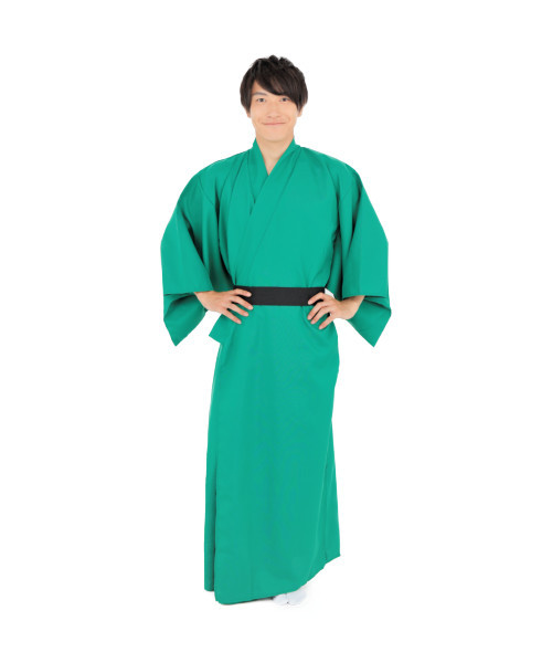 カラフル着流し グリーン コスプレ アニメ 落語 学園祭 文化祭 アニメ 余興 コスチューム ハロウィン 時代劇 寄席 宴会 二次会 帯付き