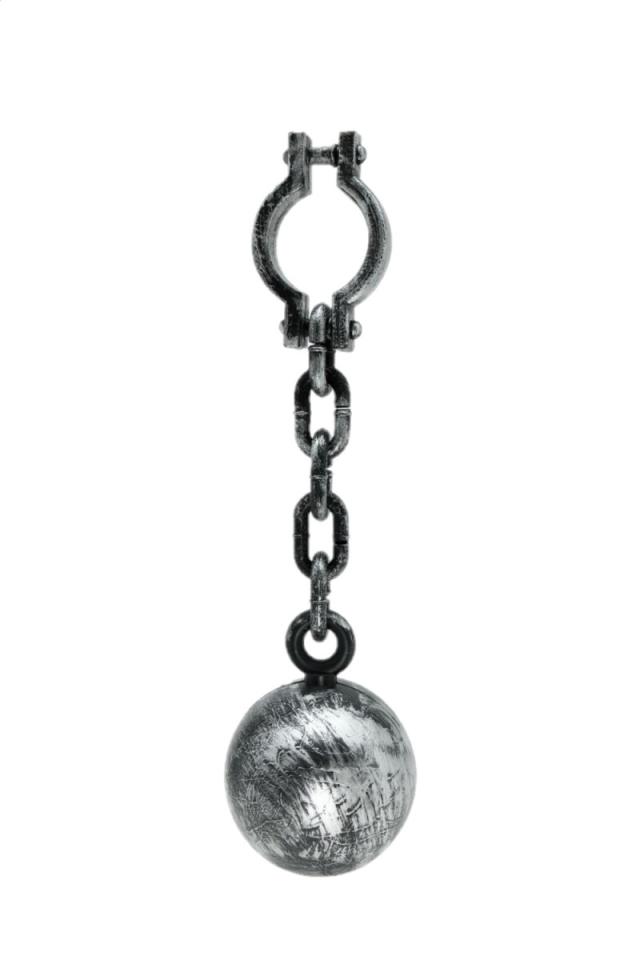 商品説明:大きな鉄球が付いた足枷です。プラスチック製なので簡単に取り外せます。囚人コスチュームなどにお勧めです。撮影小物としてもオススメです。