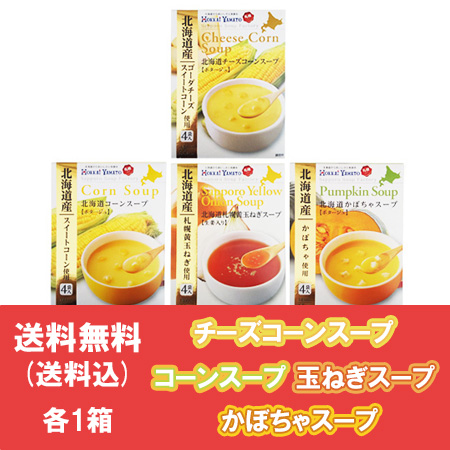 チーズコーン スープ / コーンスープ / 札幌黄 玉ねぎスープ / かぼちゃスープ 送料無料 北海道産 野菜スープ 各1箱 合計4箱 価格 2298円