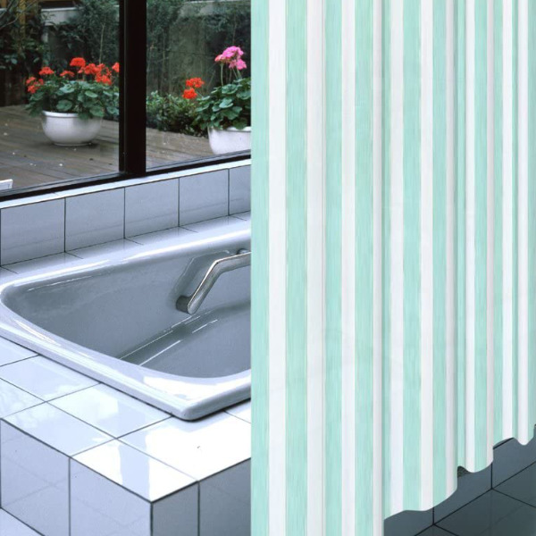 ストライプが爽やかなシャワーカーテン120×178cmです。柔軟性のあるEVA素材で、寒い日でも硬くなりにくく柔らかい質感です。バスタブのシャワー飛散防止だけでなく、キッチンや洗面所、脱衣所などの目隠しや間仕切りにもお使いいただけます。