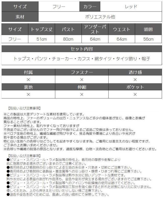 セット内容:トップス・パンツ・チョーカー・カフス・網タイツ・タイツ飾り・帽子