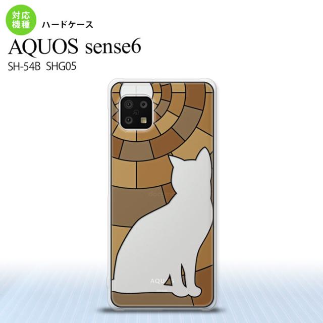 SH-54B SHG05 AQUOS sense6 背面ケース カバー ステンドグラス風 おしゃれ 猫 ブラウン ステンドグラス風 かわいい おしゃれ 背面ケース nk-sens6-sg37