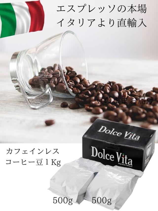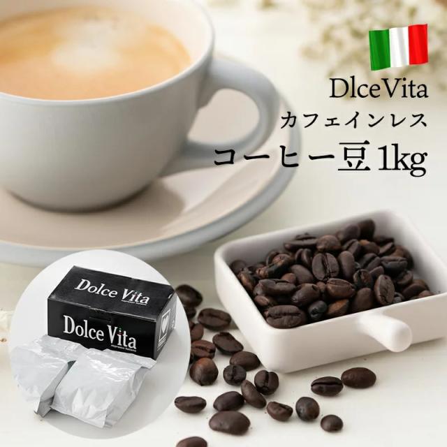カフェインレスコーヒー豆 1kg デカフェ 「DlceVita」アイスコーヒー豆 水出しコーヒー コールドブリュー 珈琲豆 直火式エスプレッソメーカー 送料無料 ギフト