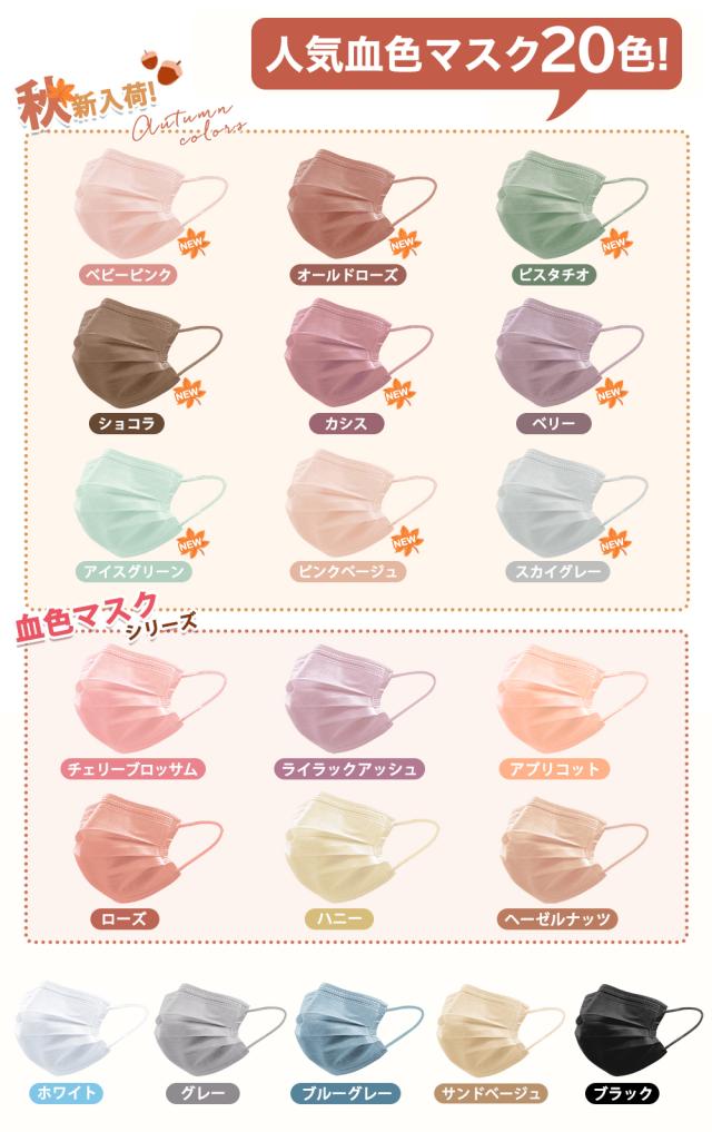 ※立体マスクのみ1箱20枚入り、片面カラーとなっております。