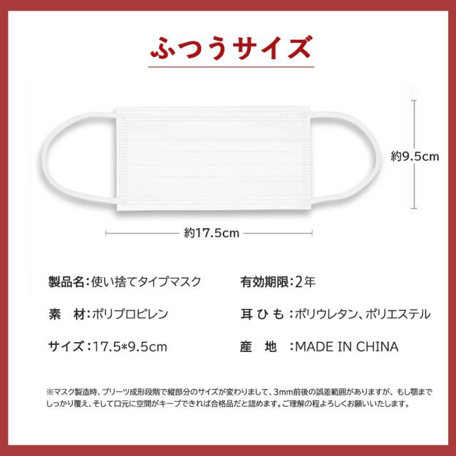 サイズ:血色不織布マスク(約)17.5cm×9.5cm