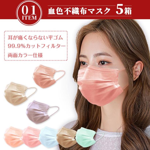 内容:血色不織布マスク(普通サイズ)51枚 ×5箱 立体マスク 20枚 ×5箱