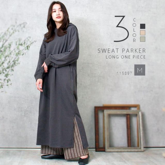 パーカーワンピース フード付きワンピース ミニ裏毛 フード付き 長袖 スウェットワンピース ロング スウェット スエット パーカー ワンピース レディース おしゃれ おすすめ オフィスカジュアル 楽ちん ゆったり Ladies onepiece チャコールグレー ミント 春新作 OR 新作