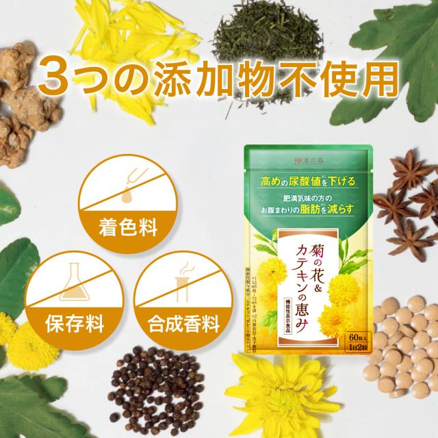 尿酸値 を下げる サプリメント ダイエットサプリ 脂肪燃焼 内臓脂肪 皮下脂肪 サプリ カテキン ルテオリン 尿酸 菊の花&カテキンの恵み 60粒 プリン体 和漢の森 尿酸値対策 尿酸メンテA 尿酸ウェルネス キニセズアンセリン