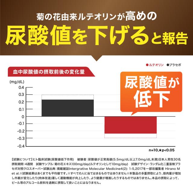- 旦那の尿酸値高めで本人より購入希望あり初めて買いました。数値高めな旦那に効果あると良いなと思いお試し購入!レビューの方々の様に効果期待してます。