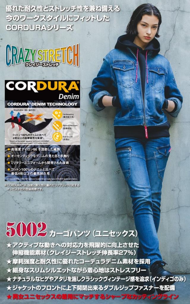 バートル コーデュラ ジーンズ カーゴパンツ ストレッチ ヴィンテージ加工 5002 BURTLE 作業ズボン 作業着 デニムパンツ メンズ レディース