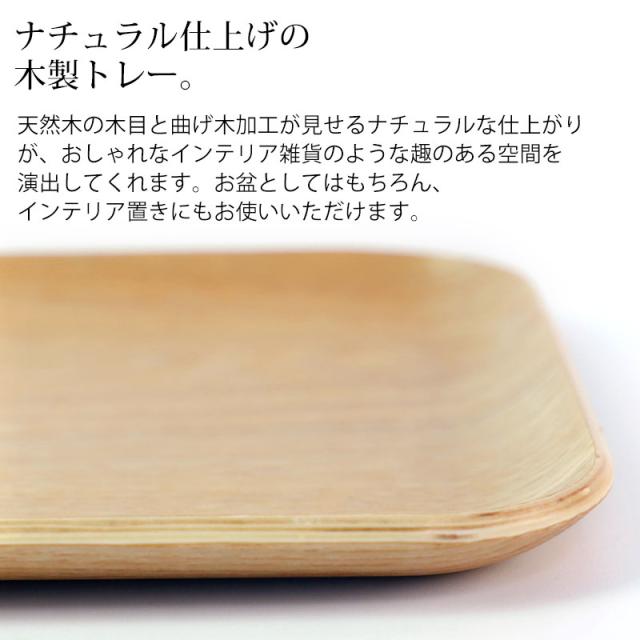 天然木の木目と曲げ木加工が見せるナチュラルな仕上がりが、おしゃれなインテリア雑貨のような趣のある空間を演出してくれる木製トレー。天然木の温もりは手になじみ、食卓に置いてあるだけでも心が和みます。ティーポットやカップと組み合わせる事でトレイの有機的でおおらかなフォルムが引き立ち、リラックスしたティータイムを演出します。お盆としてはもちろん、インテリア置きにもお使いいただけます。ナチュラルトレー 天然木製 35cm お盆 白木 トレー 北欧風 角型 長方形 おしゃれ 木製 カフェ ナチュラル プレート トレイ おぼん 業務用 ランチョンマット シンプル おうちカフェ