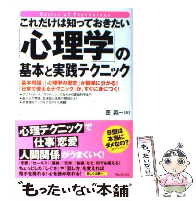 【中古】 これだけは知っておきたい「心理学」の基本と実践テクニック / 匠 英一 / フォレスト出版 [単行本(ソフトカバー)]【メール便送料無料】