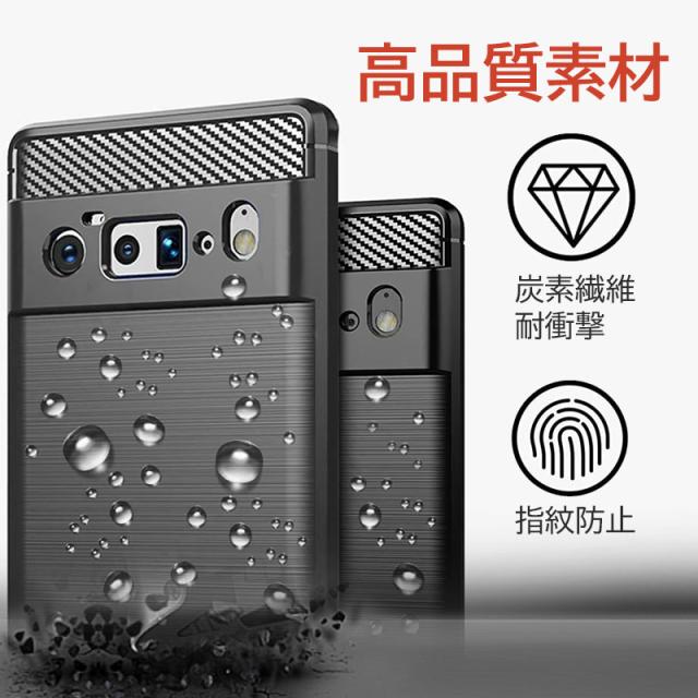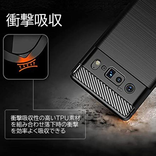 【高品質素材】耐久力に優れ、滑りにくく、柔軟性がある特殊上質な炭素繊維素材と変形しにくい性質と衝撃吸収性の高いTPU素材を組み合わせたケースです、落下時の衝撃を効率よく吸収する可能です。【薄型軽量】薄型軽量で手に収まるちょうど良いサイズ感。持ちやすくて、かさばらないケースです。【保護】全面カバー設計で、本体に傷がつきにくい。そして、本体のボタンにも包んで、押しやすいくボタンの使用寿命を有効的に延長します。ケースはとても柔軟なので、取り付けも取り外しも簡単にできます。 【精確的なデザイン】当商品はPixel専用設計で、スマホにぴったりフィットします。ケースを付けても接続端子やイヤホン、サイド側ボタンなどスムーズに操作できます。液晶画面保護フィルムも干渉せず、楽々使えます。【傷付き防止】ケースを付けていることにより、液晶画面や、カメラレンズを保護してくれます。【ワイヤレス充電対応】ケースを付けたままのワイヤレス充電(Qi)が可能です。