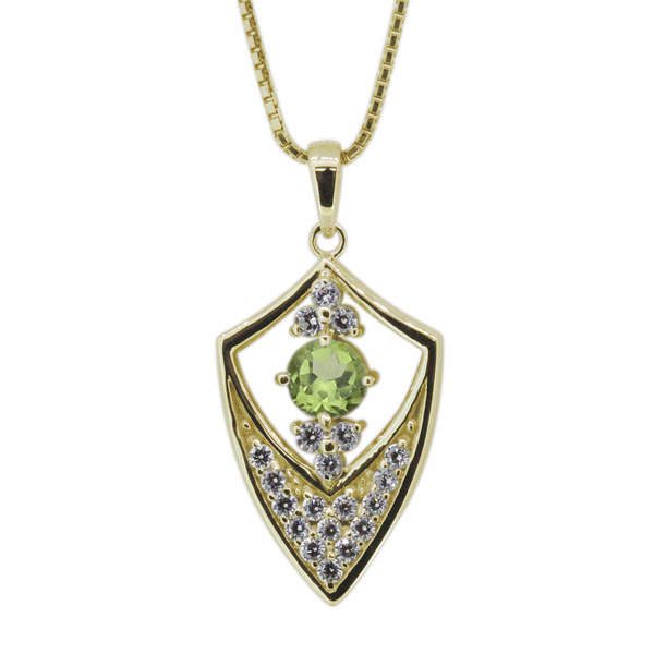 ペリドット・8月誕生石・メンズネックレス・盾・シールド・18金・ペンダント