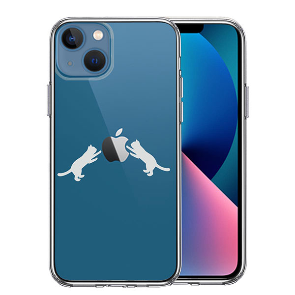 iPhone13mini ケース ハードケース ハイブリッド クリア にゃんこ りんご 取り合い 薄いグレー カバー アイホン アイフォン スマホケース